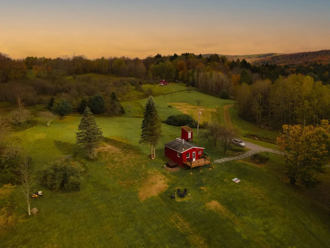 Welcome to Red Cabin on the Hills, an exclusive retreat nestled in the Catskill Mountains of Upstate NY. This secluded cabin, perched on a 5.5-acre lot, offers complete isolation amidst the splendor of alpine treetops, tranquil creeks, and awe-inspiring mountain views. It provides a peaceful haven where guests can escape the hustle and bustle, surrounded by the natural beauty of the Catskills.